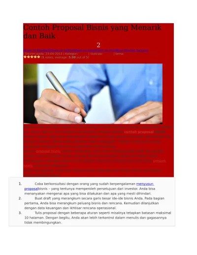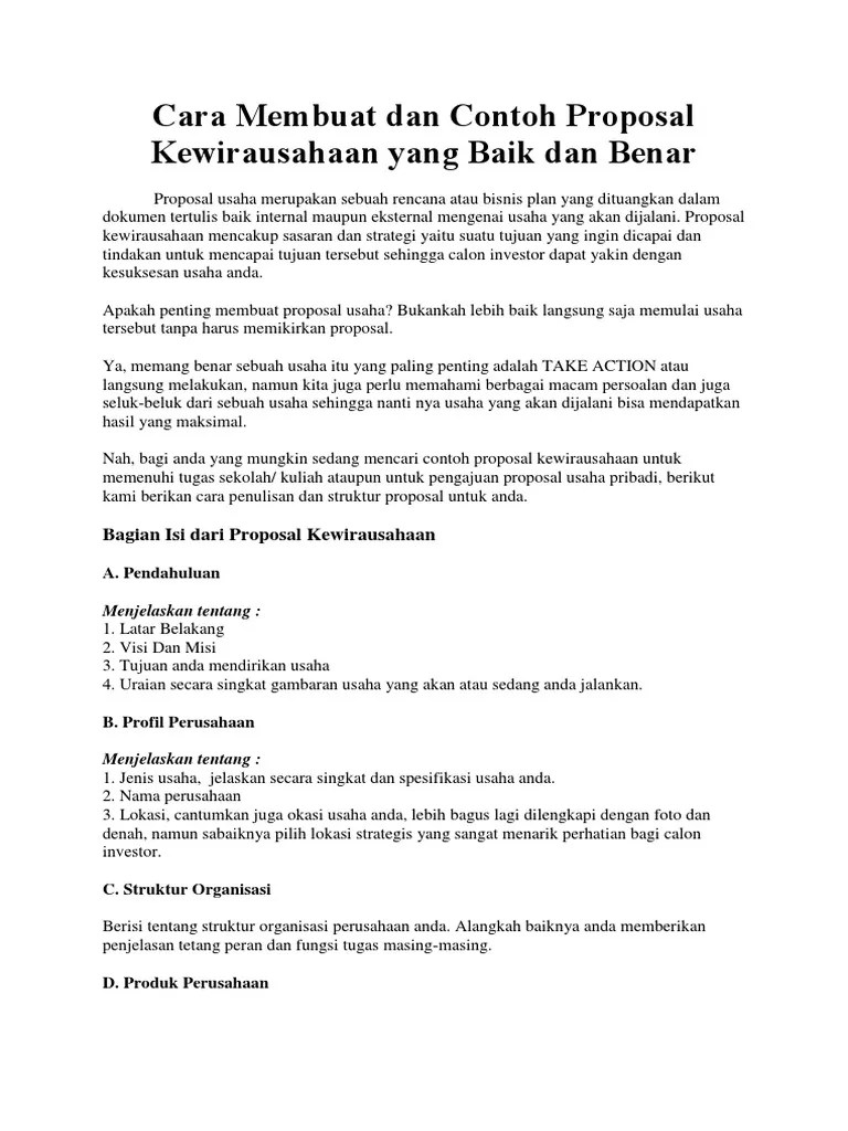 Proposal merupakan bentuk pengajuan penawaran gagasan, ide, rencana kepada pihak tertentu untuk mendapat izin, dukungan dana, . Contoh proposal usaha & bisnis yang di sukai investor, tujuan, fungsi dan cara membuat proposal usaha yang baik dan benar. Ketika mengajukan contoh bisnis plan ke calon investor anda juga wajib mendeskripsikan produk . Beberapa contoh proposal bisnis adalah proposal kuliner, proposal . Jika proposal kamu menarik, maka investor atau pemodal bisa saja tertarik untuk menanamkan modal di bisnis kamu.